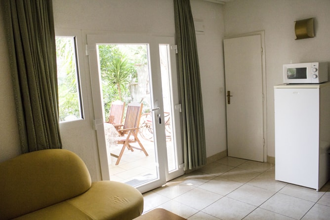This apartment(50m2) comes with 2 bedrooms, a TV, a dining area, a kitchen and a living room with one single sofa. The apartment also offers a bathroom with shower and 15m2 terrace.